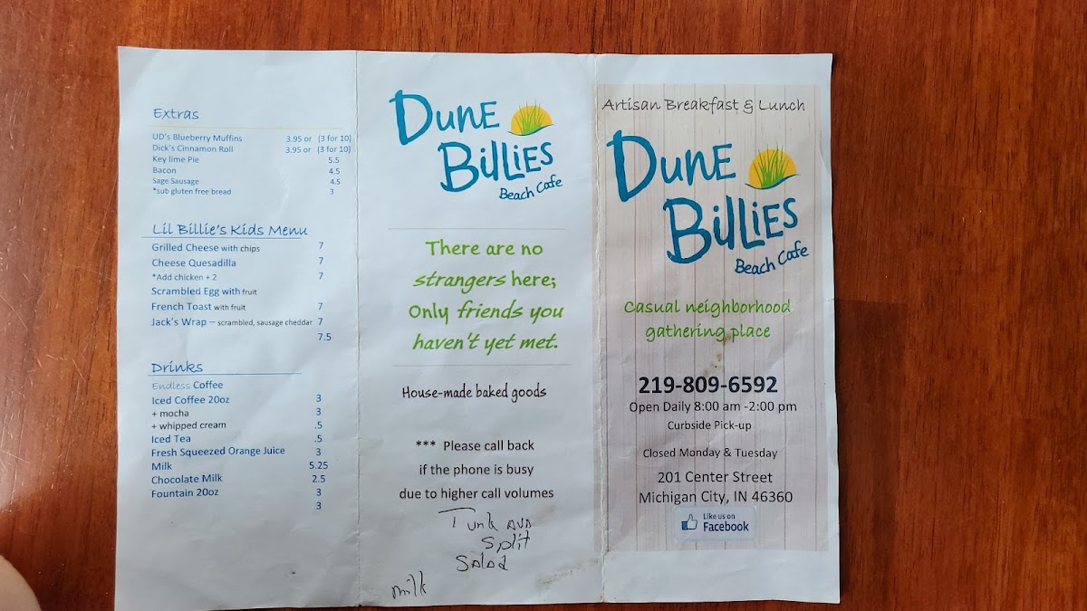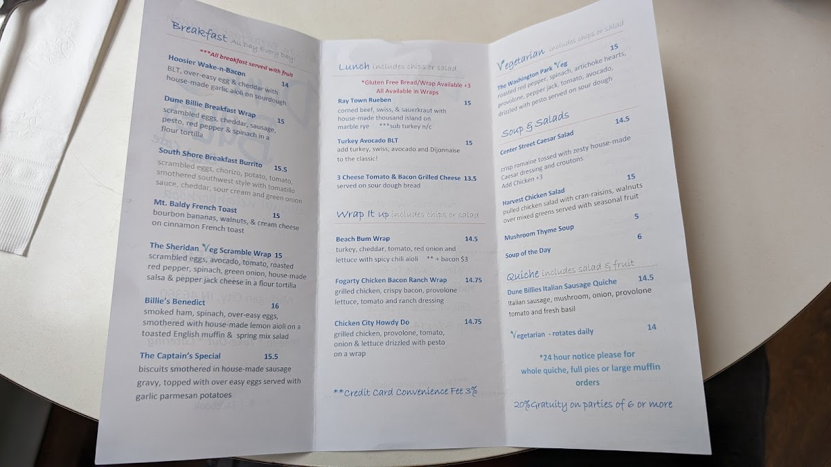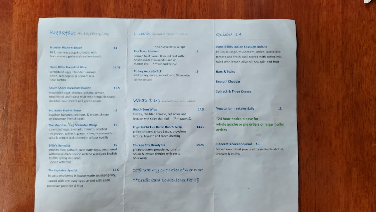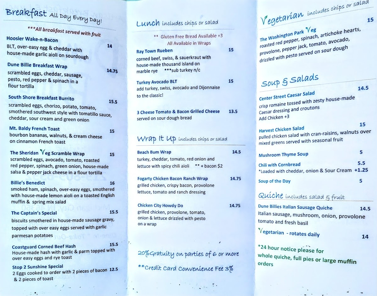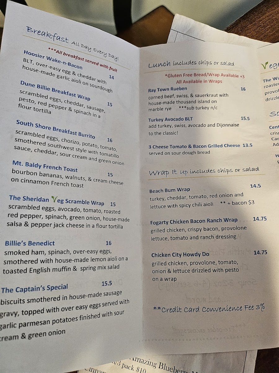 Biscuits smothered in house-made sausage gravy, topped with over easy eggs served with fruit