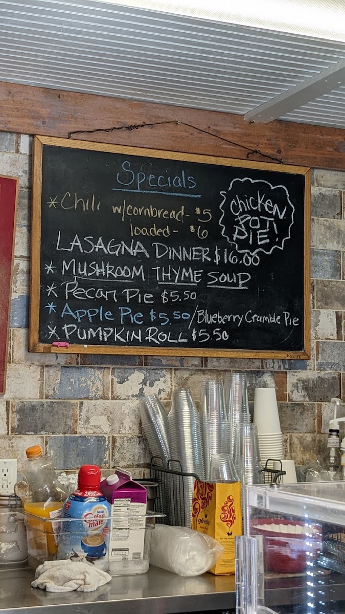 Scrambled eggs, cheddar, sausage, pesto, red pepper & spinach in a flour tortilla
